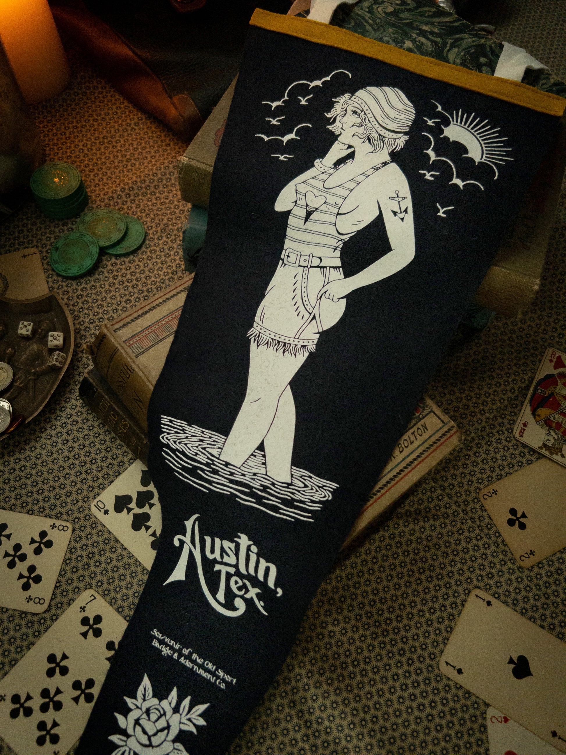 Material: Screenprint on 70/30 blend, wool and rayon.