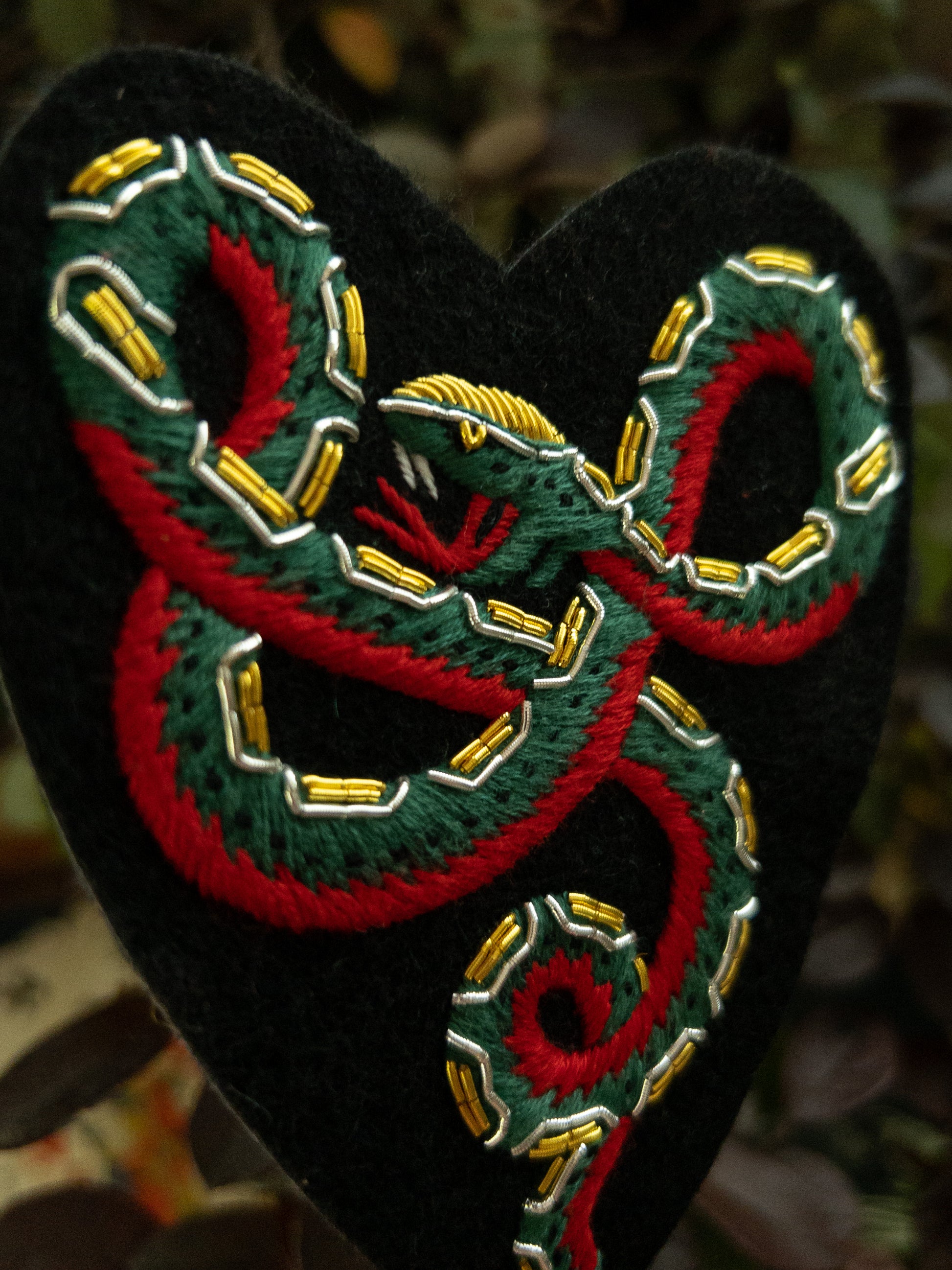 Material: Metallic bullion wire, thread, 100% cotton backing.