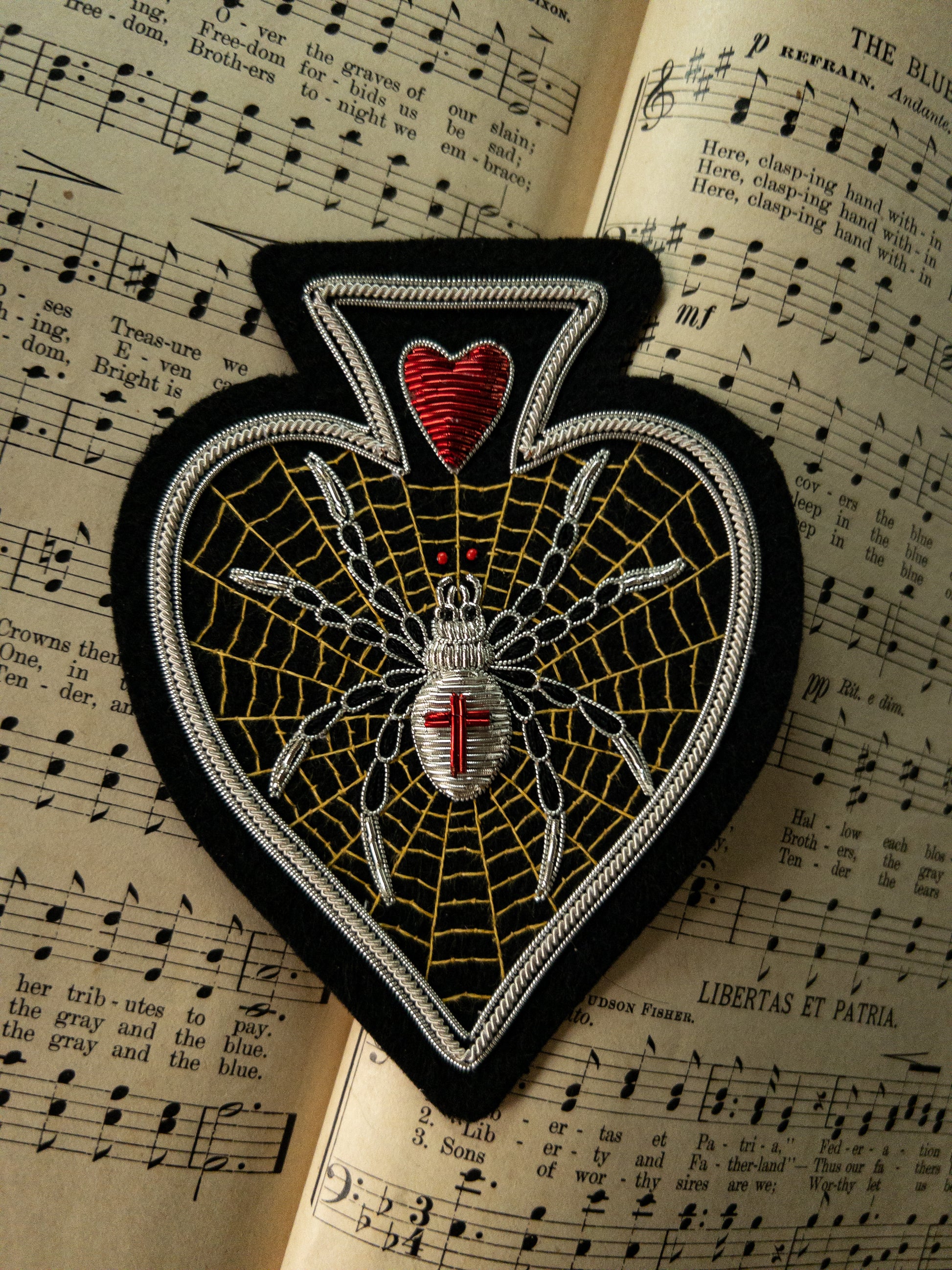 Material: Metallic bullion wire, thread, 100% cotton backing.